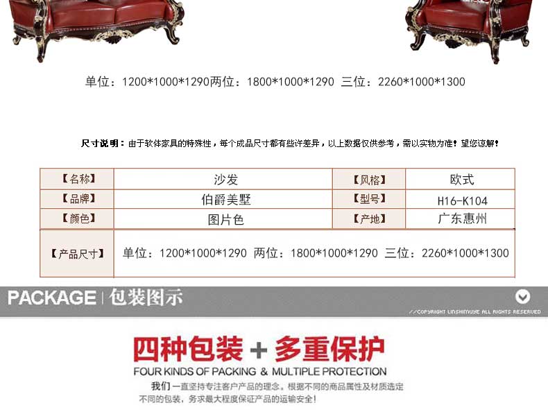 伯爵美墅 厂家直销欧式新款沙发组合单人位双人位三人位组合 H16-K104黑檀
