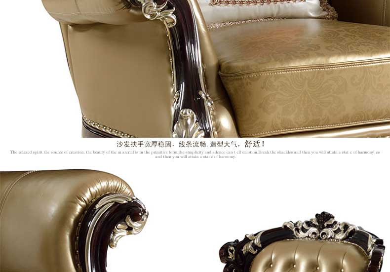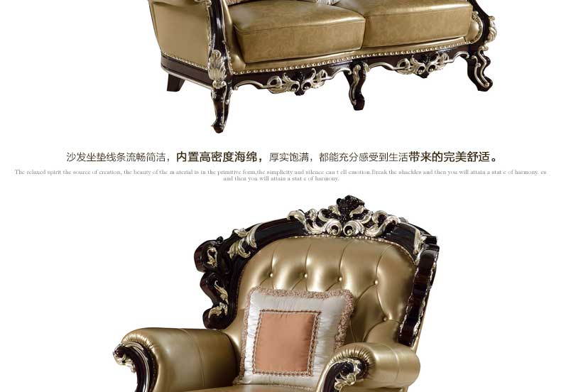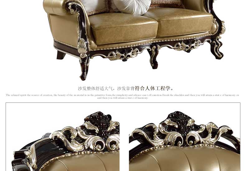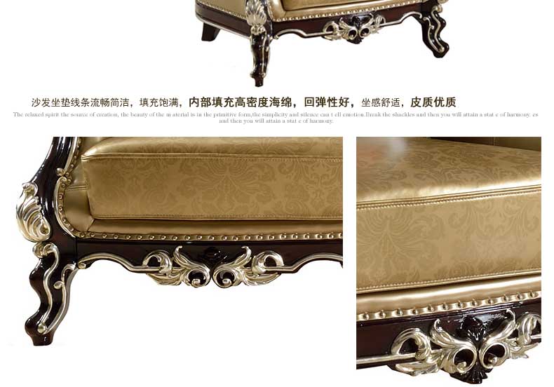 伯爵美墅 黑檀 欧式沙发123组合高档三人大户型客厅实木简欧皮艺沙发 H16-K101