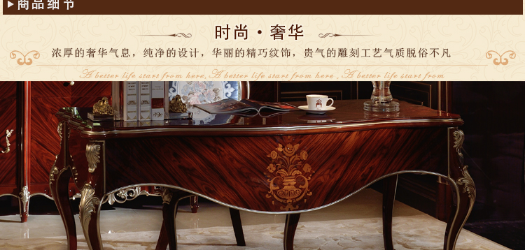 伯爵美墅酸枝系列欧式书桌电脑桌写字台 实木办公桌法式书桌组合S16-S021