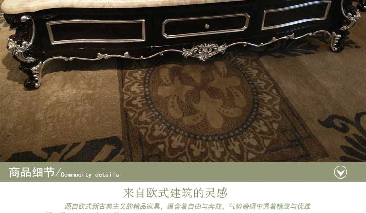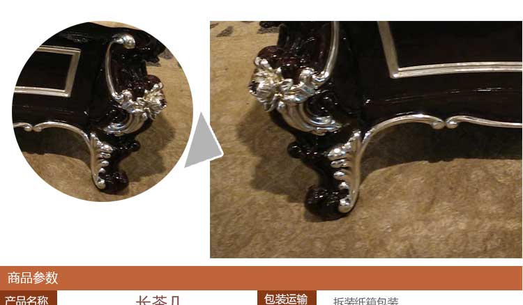 伯爵美墅 客厅长茶几欧式茶几实木雕花茶几 S16-K211长茶几黑檀
