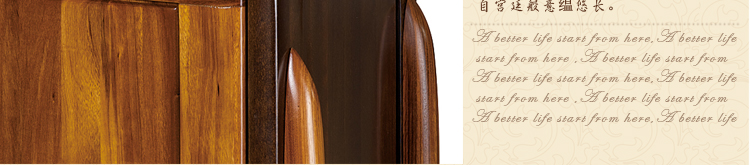 材质上的精挑细选,工艺上的尽善尽美,回归自然,崇尚原木韵味,外加现代、实用、精美的设计风格,反映出现代都市人进入后现代社会的另一种思考方向。