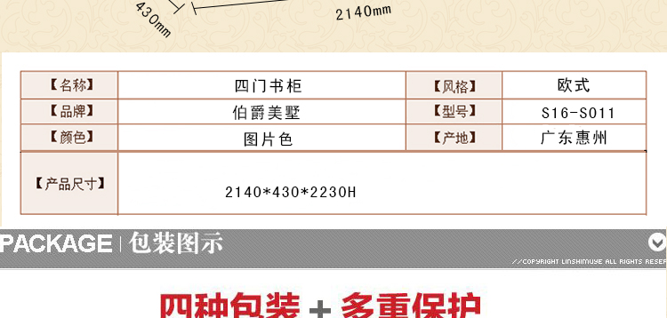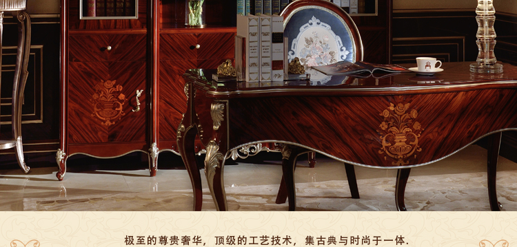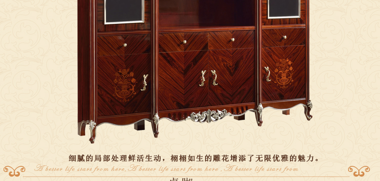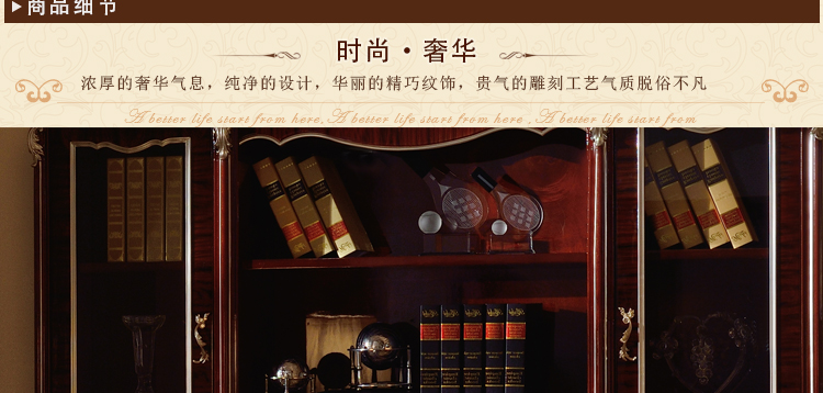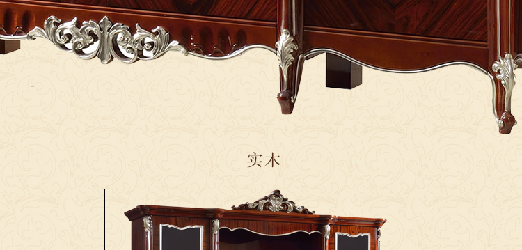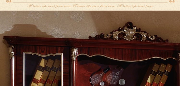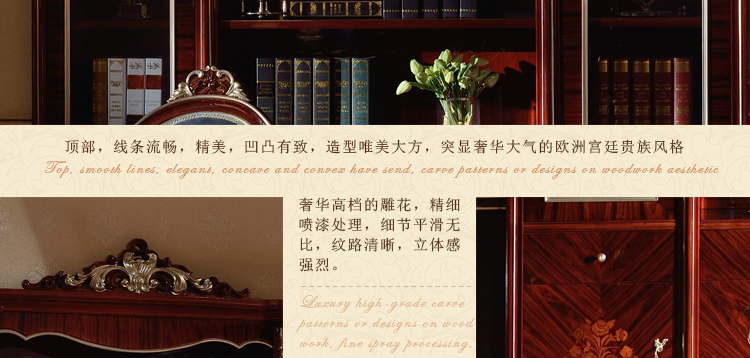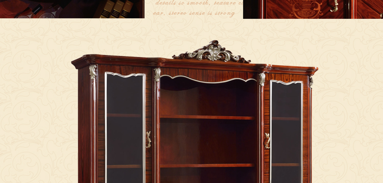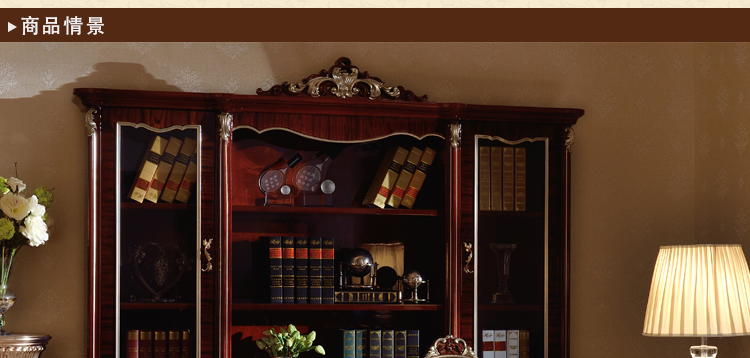 伯爵美墅酸枝系列欧式书柜实木四门法式书橱带玻璃门储物书房家具S16-S011