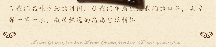 材质上的精挑细选,工艺上的尽善尽美,回归自然,崇尚原木韵味,外加现代、实用、精美的设计风格,反映出现代都市人进入后现代社会的另一种思考方向。