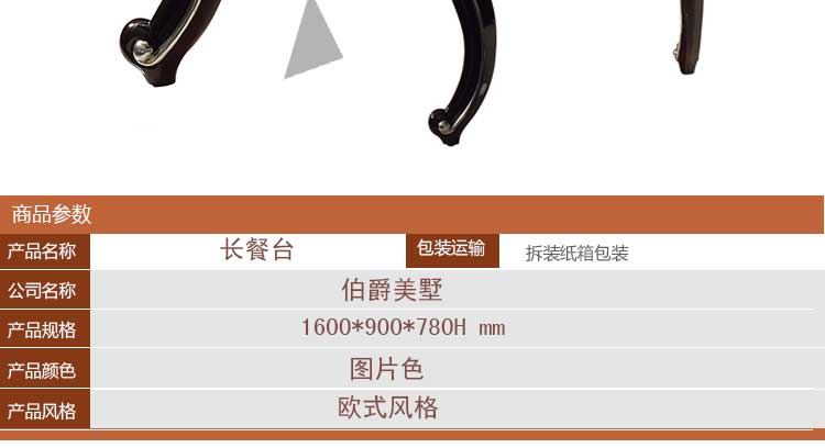 伯爵美墅 黑檀实木餐桌欧式餐桌小户型餐台长方形餐桌吃饭桌 S16-C901