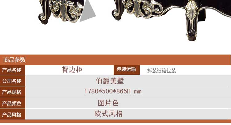 伯爵美墅 黑檀欧式餐边柜高档餐边柜储物柜时尚收纳柜 S16-C921