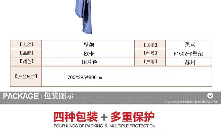 欧卡 实木壁架美式装饰架新款客厅壁架 F1502-D壁架