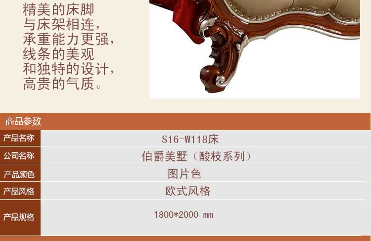 伯爵美墅欧式床双人床1.8米雕花床卧室家具婚床床公主床S16-W118