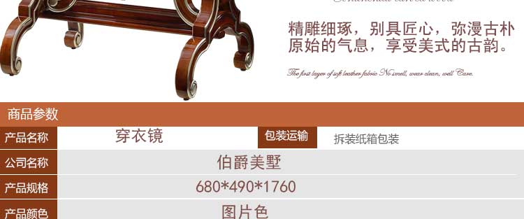 伯爵美墅 欧式穿衣镜 落地全身镜 欧式试衣镜卧室化妆镜新古典镜子S16-W861