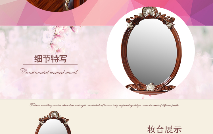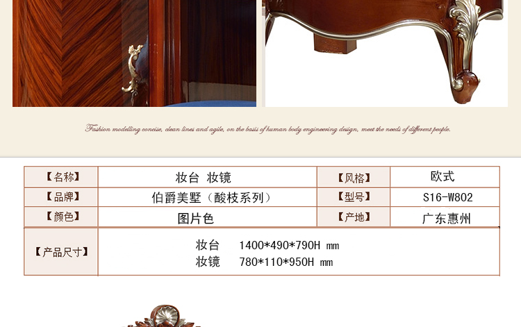 伯爵美墅新款欧式实木妆台妆镜高档卧室梳妆台S16-W802