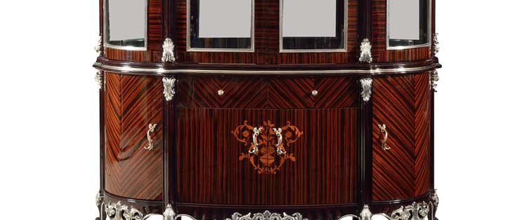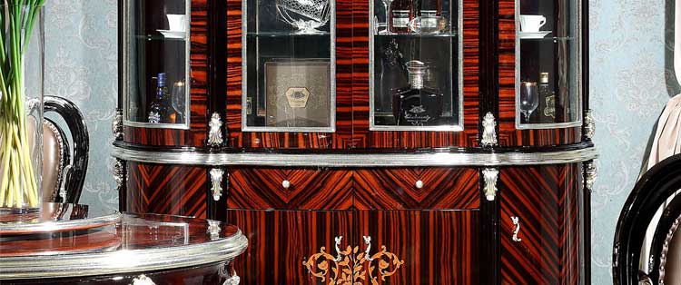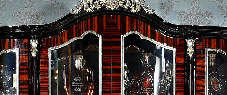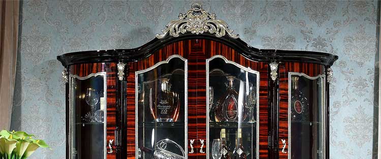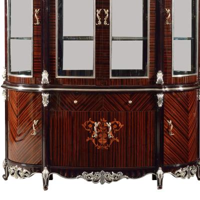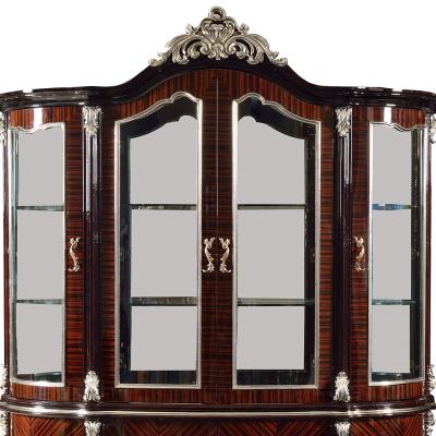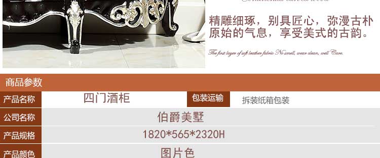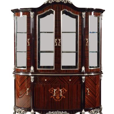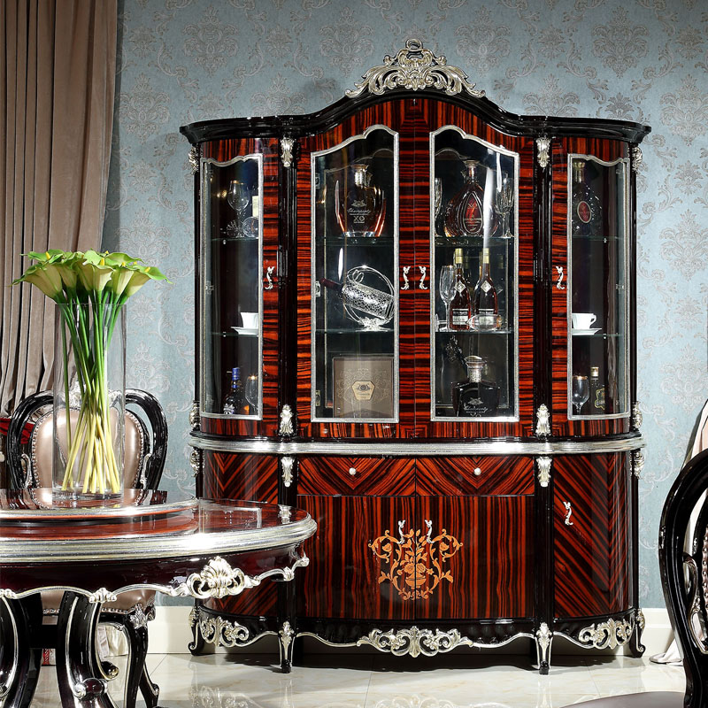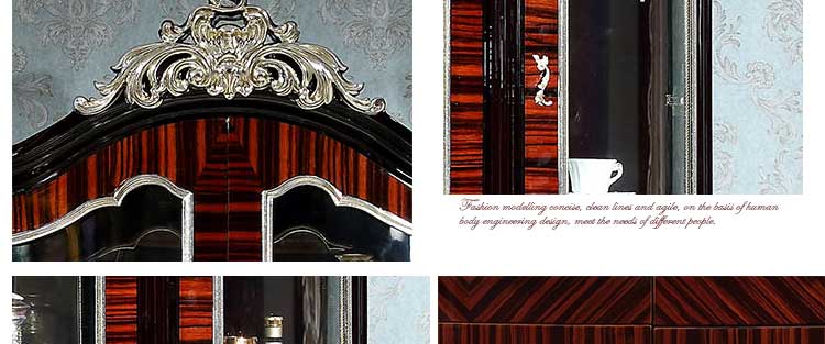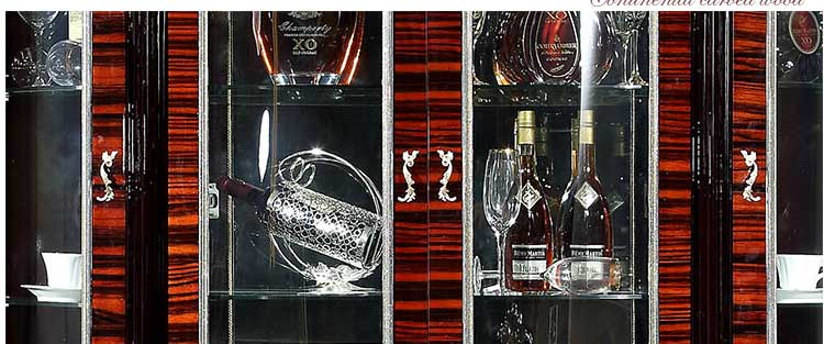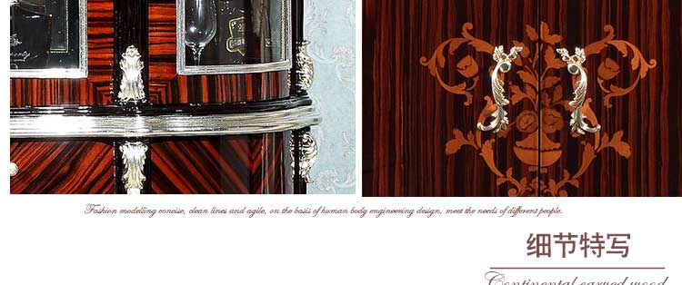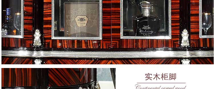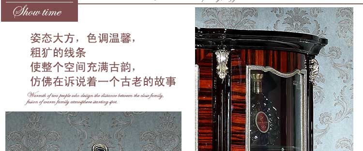 伯爵美墅 欧式四门酒柜实木柚木色欧式法式深色新古典半圆酒柜收纳柜S16-C933