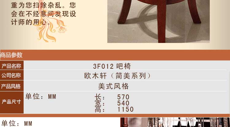 欧木轩简美风格餐厅舒适吧椅休闲椅高档创意吧凳吧台椅3F012 吧椅