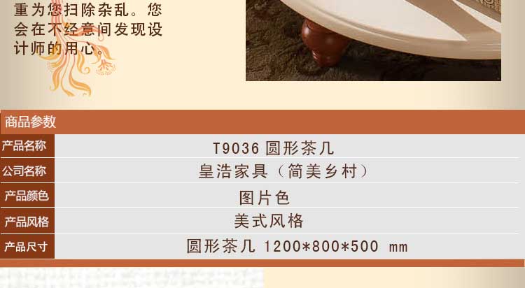 皇浩家具茶几桌小户型简美风格小巧圆茶几咖啡桌T9036圆形茶几