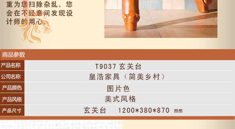 皇浩家具新款厂家直销客厅家具简美乡村玄关柜浅色T9037玄关台