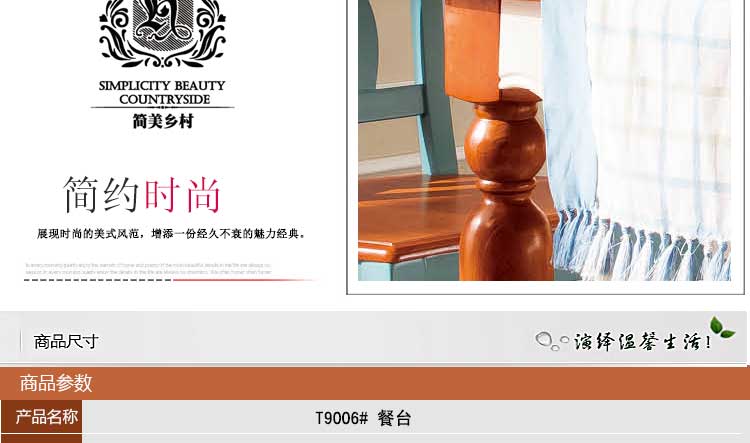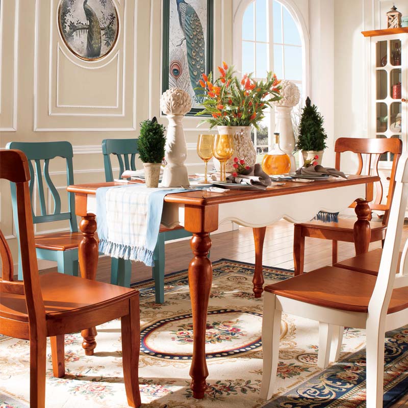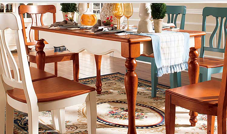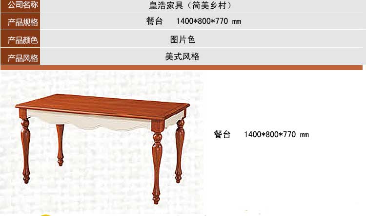 皇浩家具美式乡村餐桌长方形简美复古家具小户型餐桌子T9006#餐台
