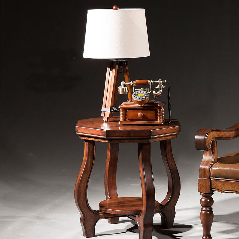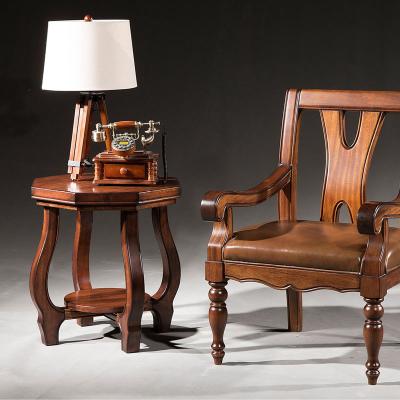 欧卡 美式实木圆形茶几圆形洽谈桌美式仿古咖啡桌休闲角几Y1502-A