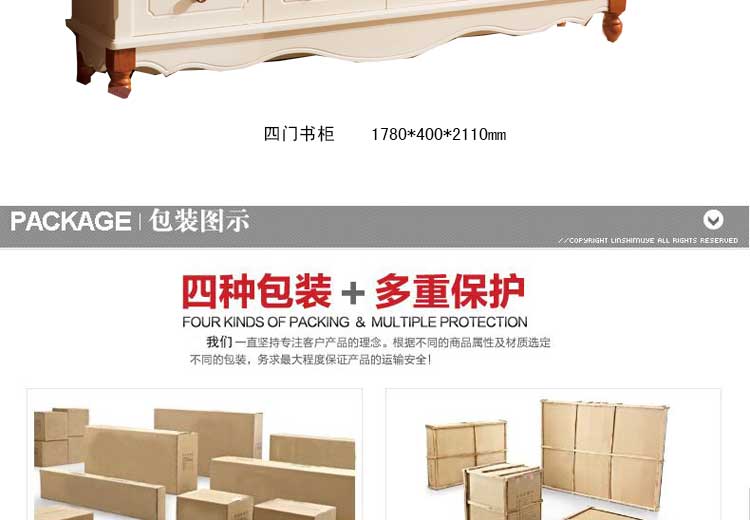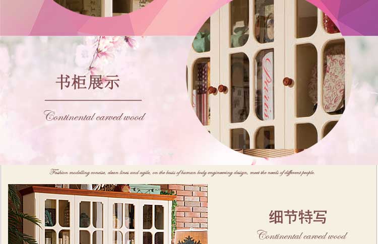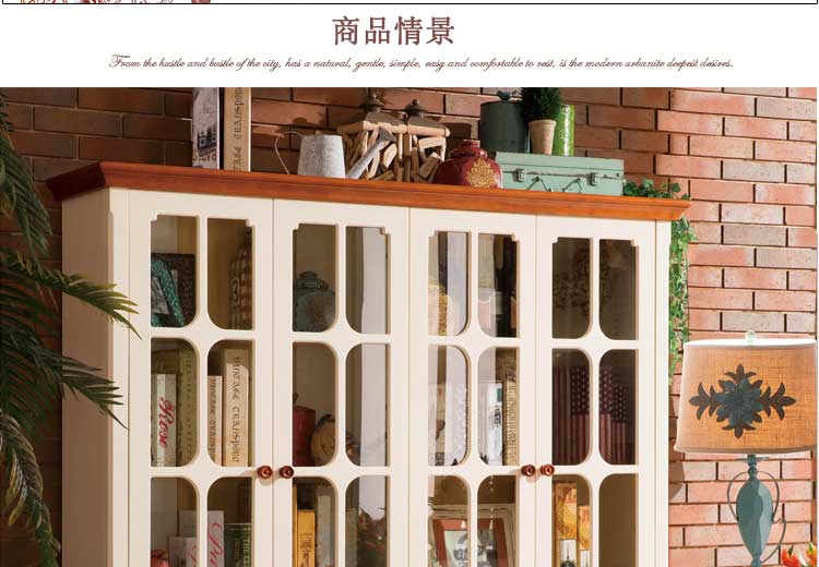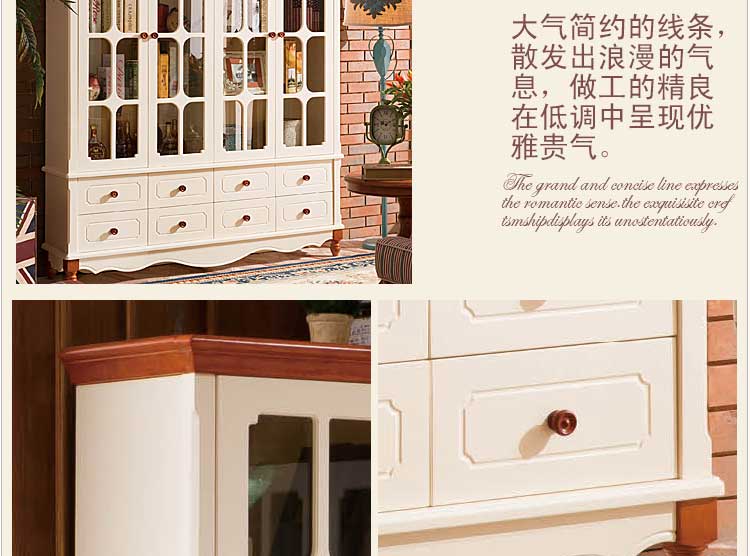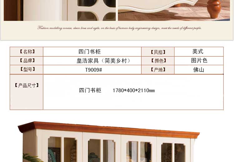 皇浩家具品质奢华简美乡村系列新款书房美式储物柜T9009#四门书柜