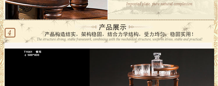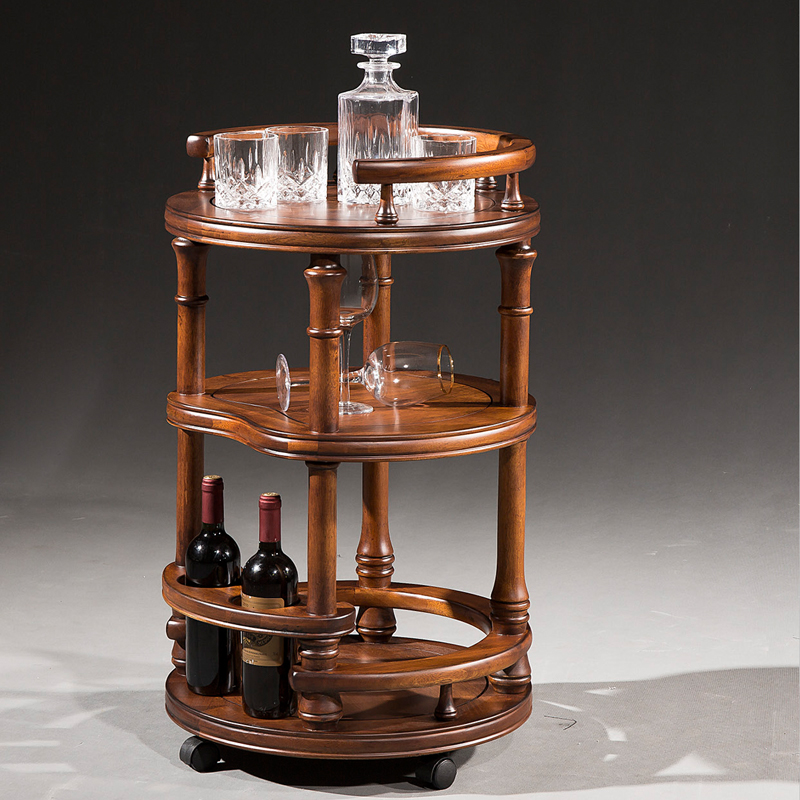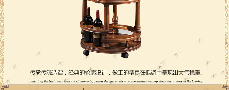 欧卡 美式实木餐车别墅双层移动送餐车 美式实木餐车手推车 餐厅酒水车T1561