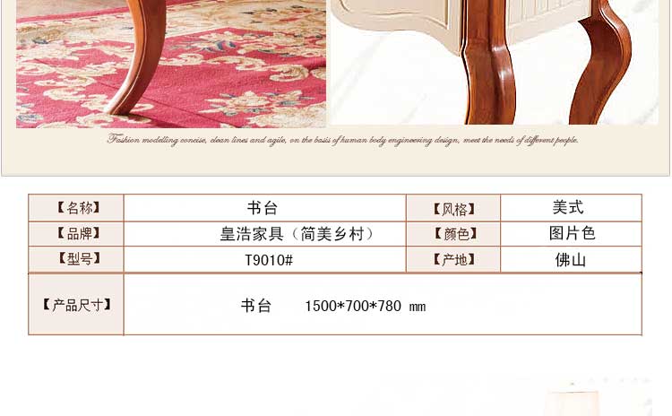 皇浩家具新款美式书桌办公桌中小户型书房家具T9010#书台
