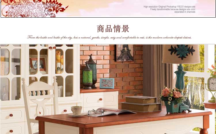 皇浩家具新款简美乡村系列书桌椅组合美式书台电脑桌T9011#书台