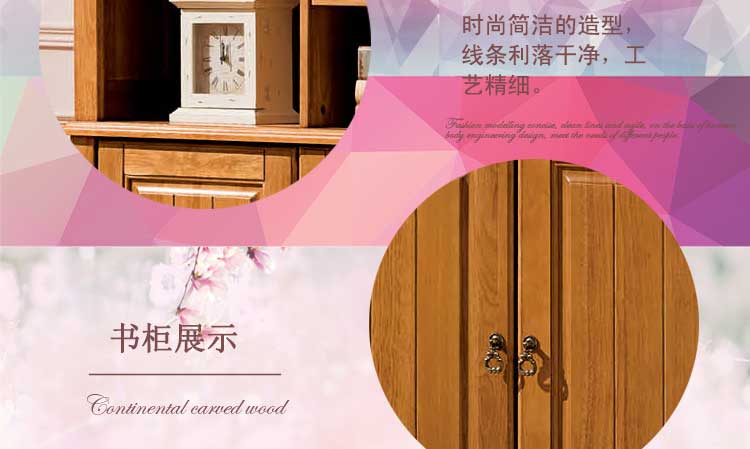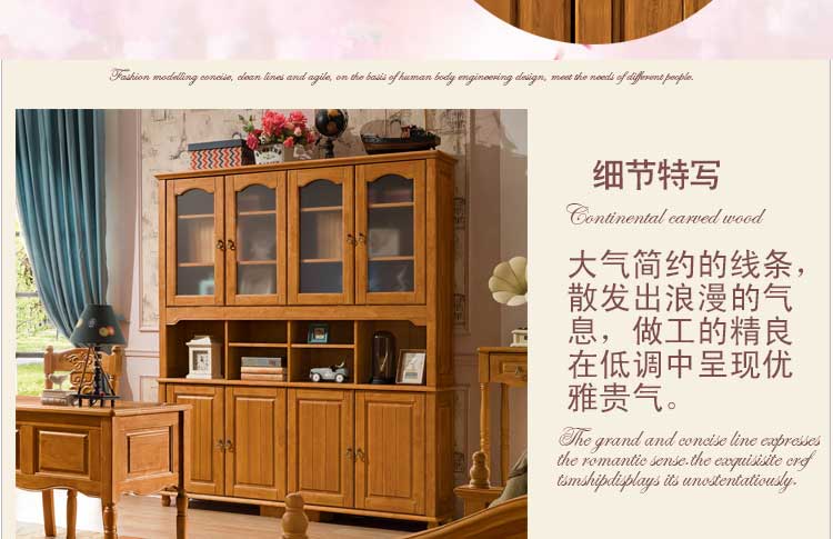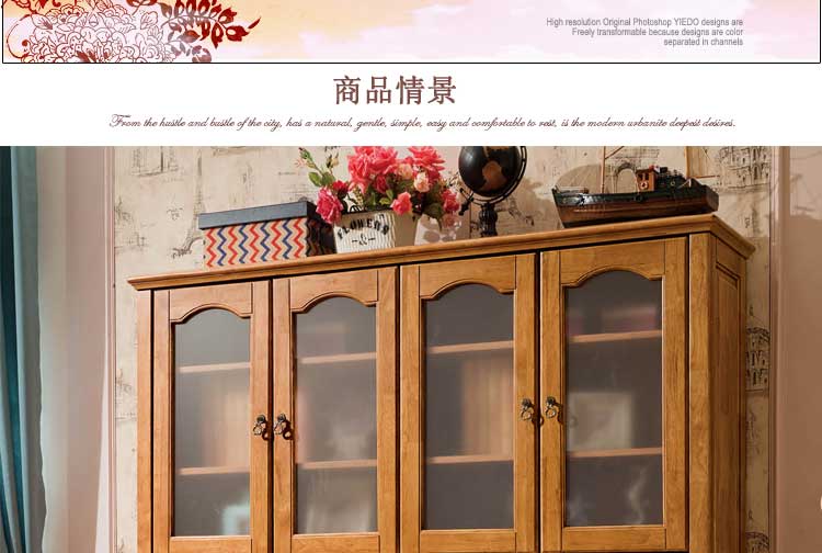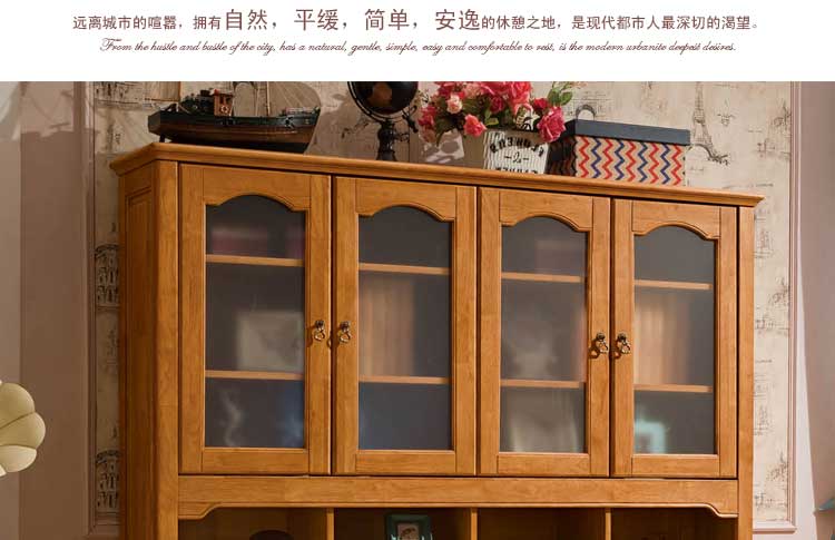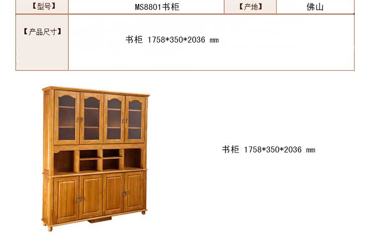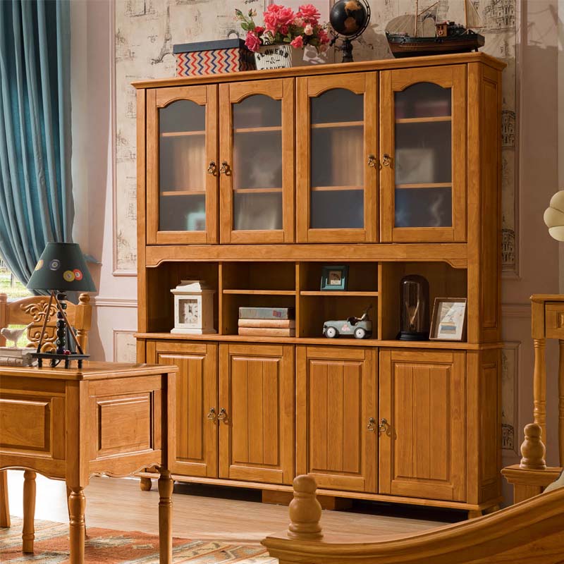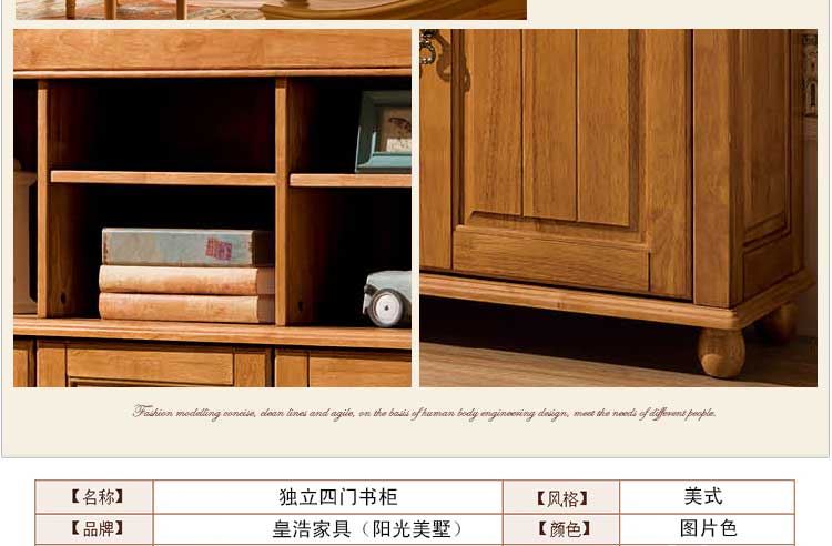 皇浩家具新款四门书柜简美乡村风格书房家具MS8801独立四门书柜