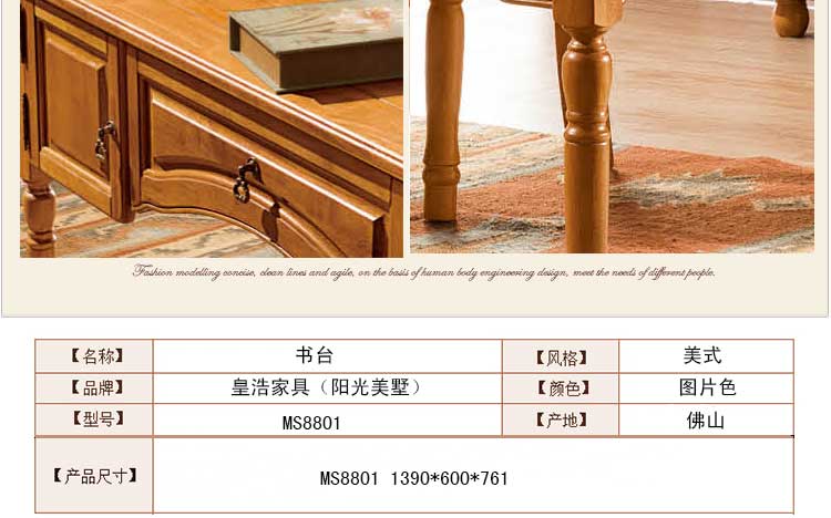 皇浩家具新款书房家具美式书桌办公桌电脑桌MS8801书台