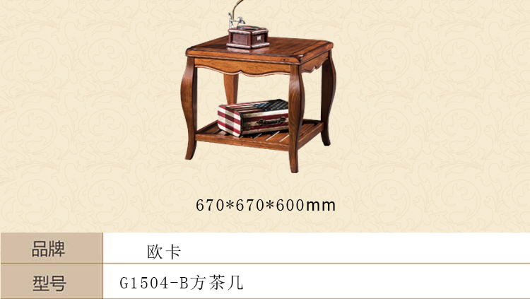 欧卡 厂家直销美式方茶几实木茶几百搭款边几 G1504-B方茶几