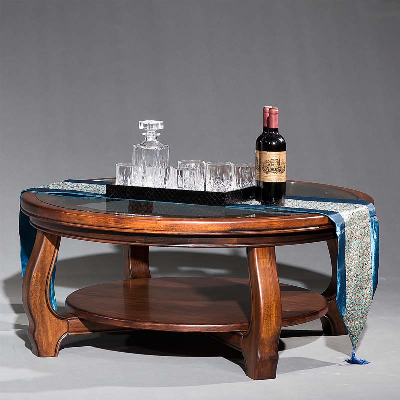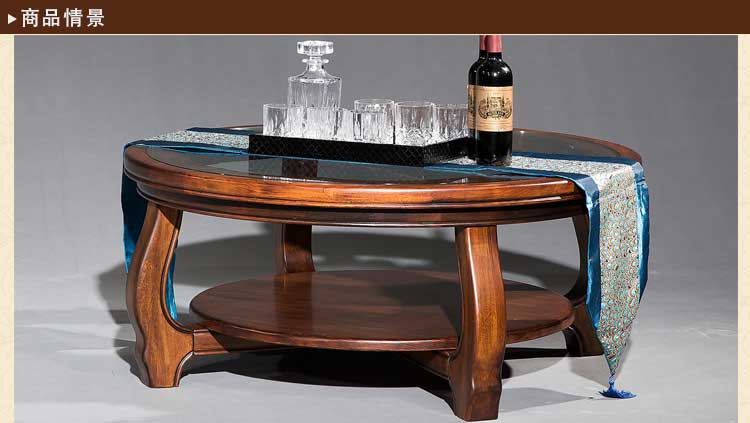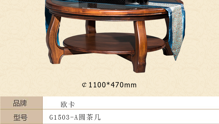 欧卡 实木圆茶几新款客厅茶几美式茶几 G1503-A 圆茶几