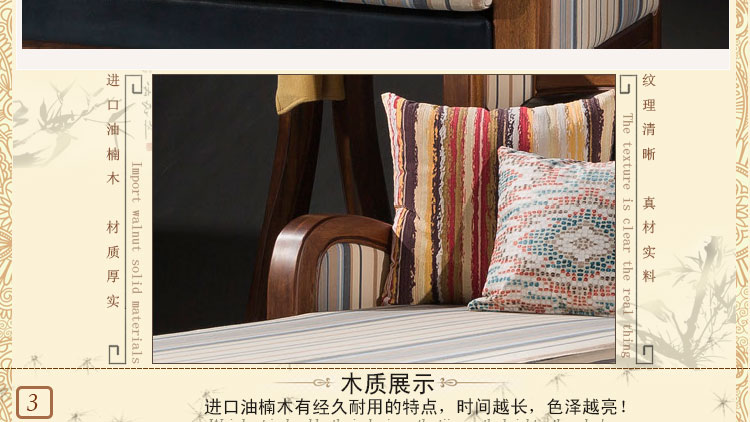 这套沙发纯实木的,卖家包装结实,物流给力,整体进家,没有一点磨损太漂亮了,而且看起来很有档次,沙发的漂亮让我开始后悔我家没贴壁纸,过几年吧,我再给家里贴上壁纸,肯定更漂亮!