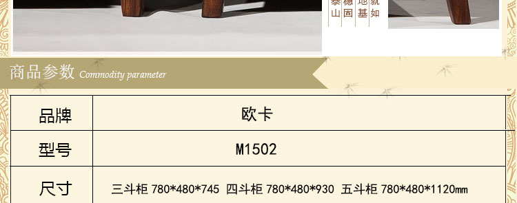 欧卡 全实木3斗柜4斗柜5斗柜抽屉储物收纳柜美式实木家具 M1502