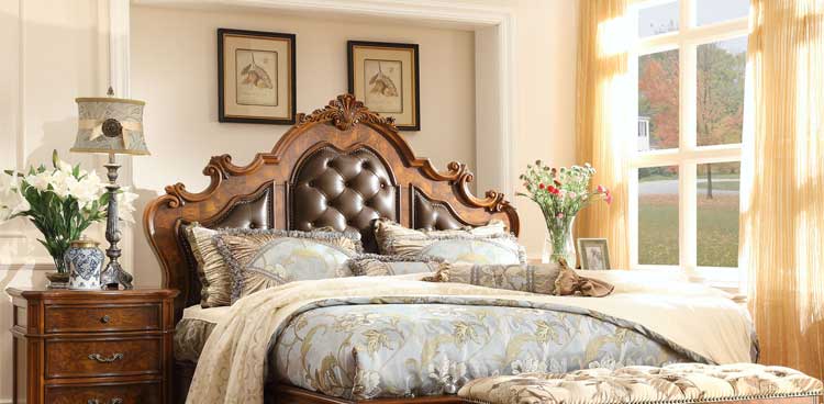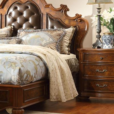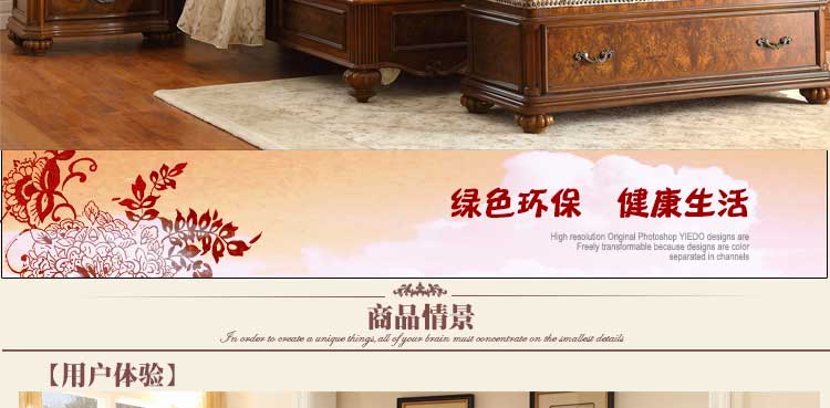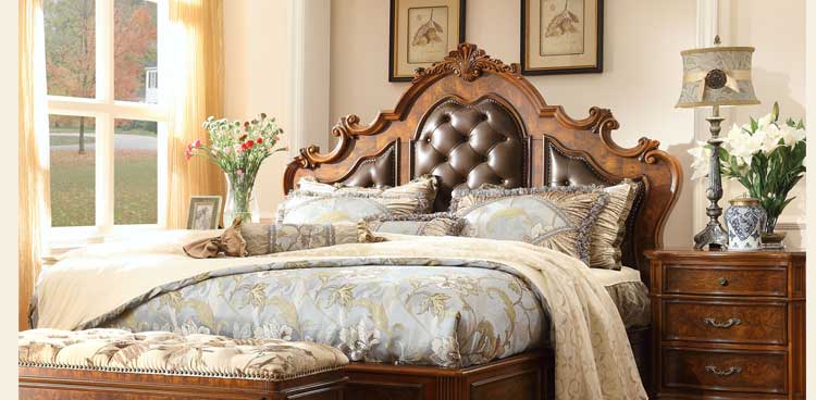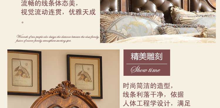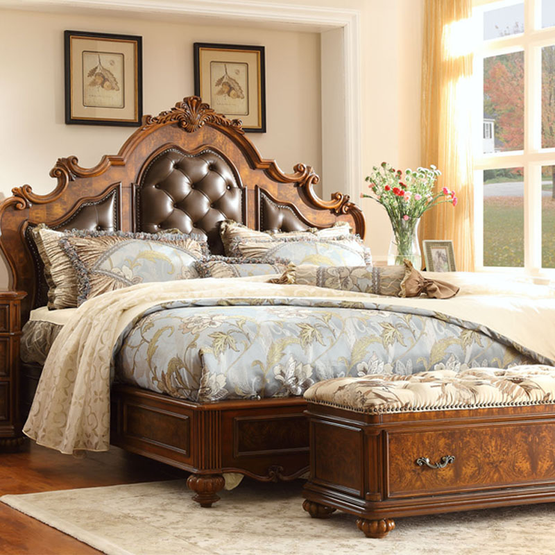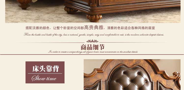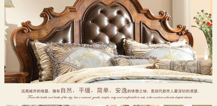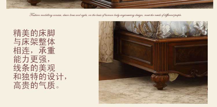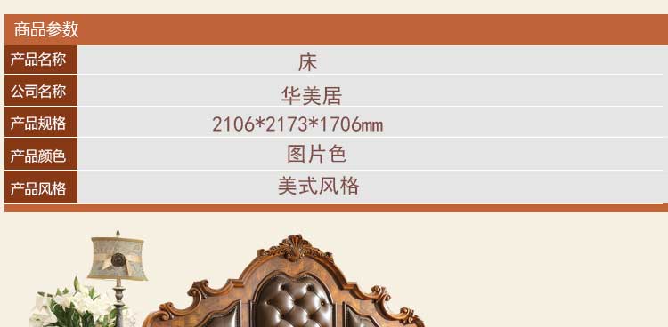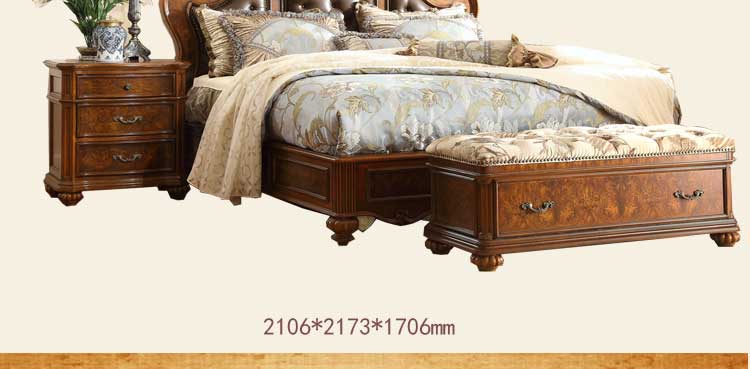 华美居 家具美式床实木床乡村复古美式双人床真皮床1.8米 R105N-70/1/7