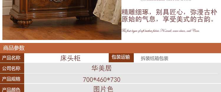 华美居 全实木床头柜美式床头柜美式床头柜 储物柜美式家具 R105N-43