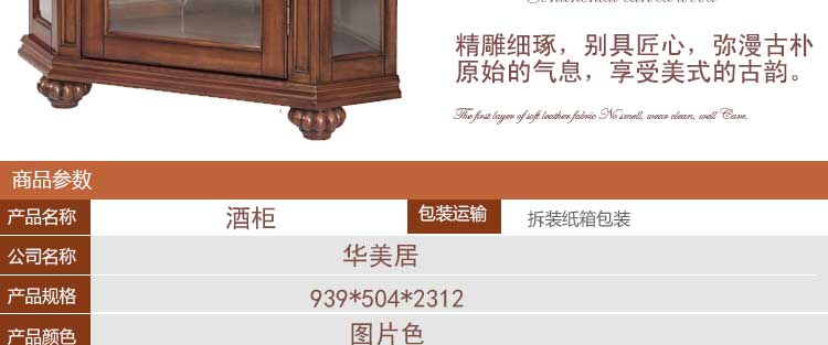 华美居 美式实木酒柜餐边柜门厅酒柜展示柜欧式小酒柜客厅多功能高柜745N