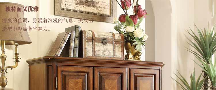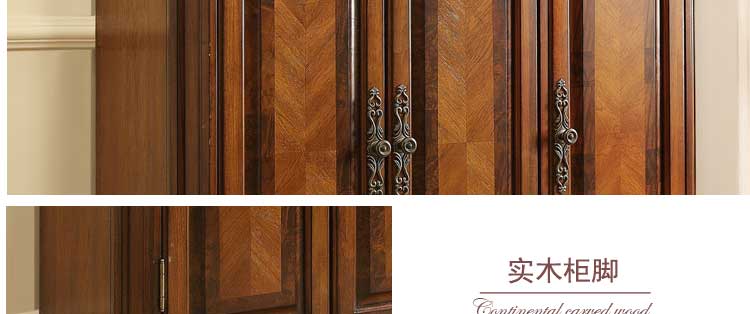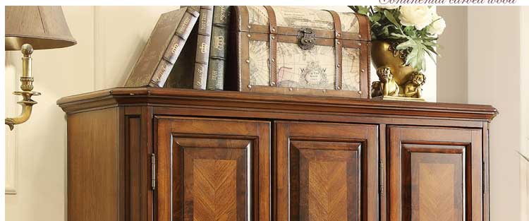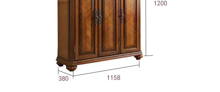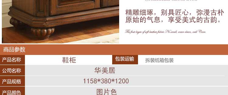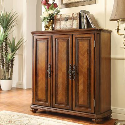 华美居 美式乡村田园鞋柜3门实木雕花对开门整装门厅玄关储物柜 R105N-03