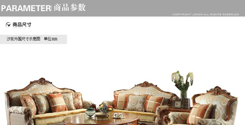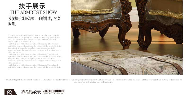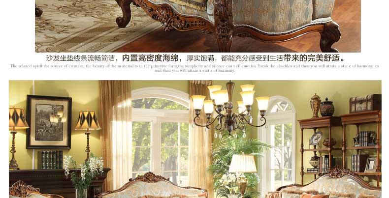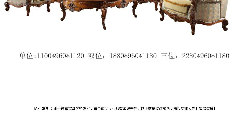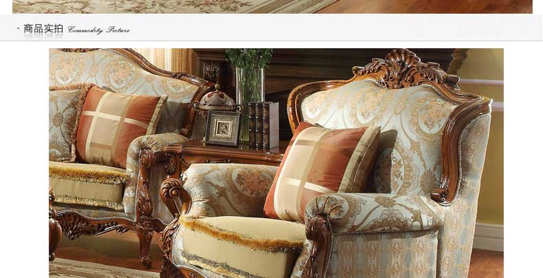 华美居 全实木布艺沙发组合 三人位沙发美式沙发 法式沙发客厅家具C-050