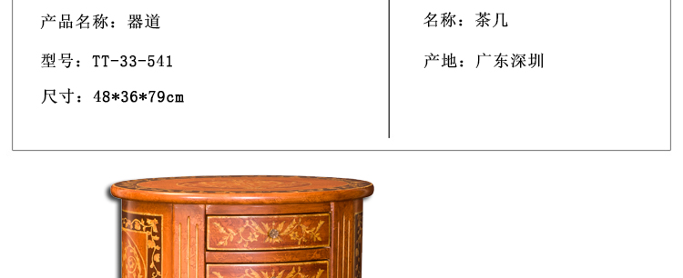 器道家具实木客厅中式风格啡木色哑光画花小茶几实用茶几TT-33-541