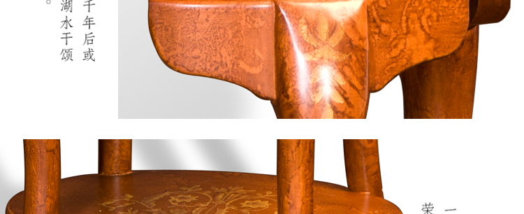 造型简练、以线为主,严格的比例关系是家具造型的基础。结构严谨、作工精细,明代中式风格家具的卯榫结构,极富有科学性。木材坚硬、纹理优美,自然优美,呈现出羽毛兽面等膝陇形象,令人有不尽的遐想。