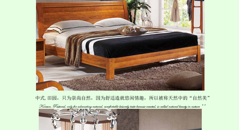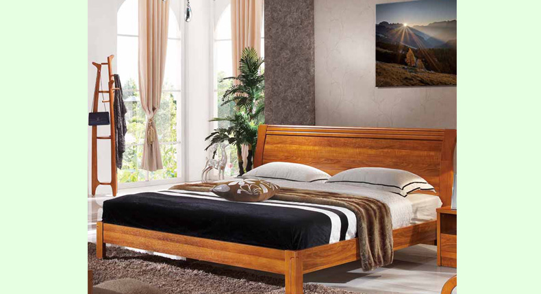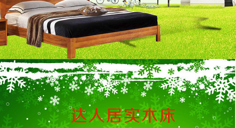 达人居 实木床 1.8双人婚床1.5老橡木床 现代简约中式全实木家具6a07