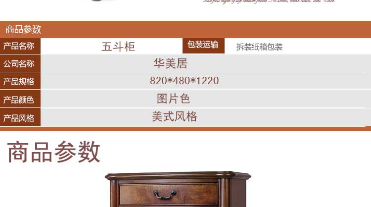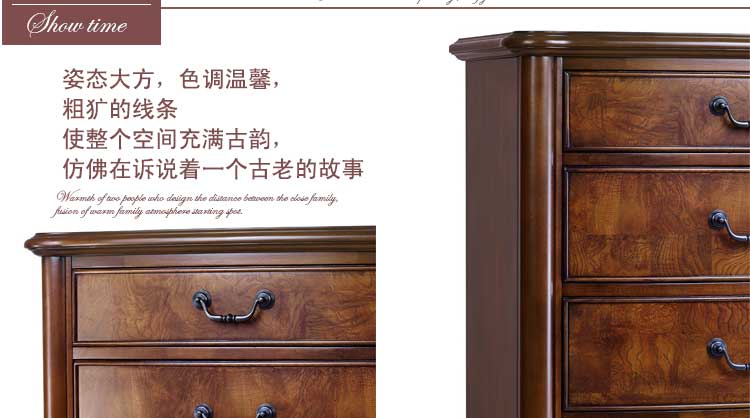 华美居 五斗柜客厅储物柜子简美实木斗柜简约五斗橱美式乡村卧室 R118N-14