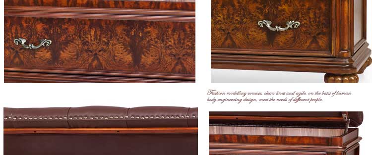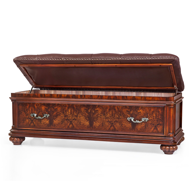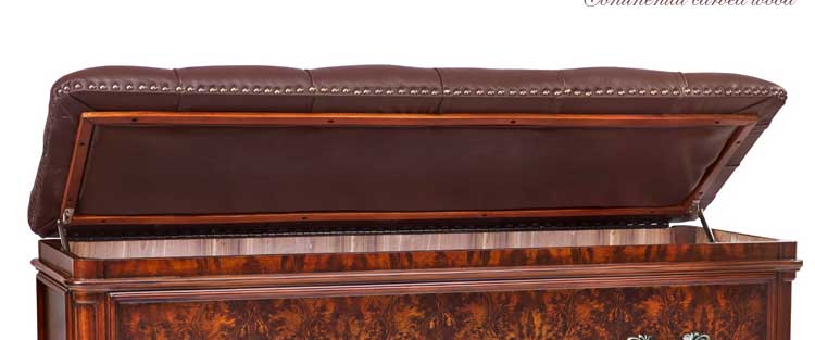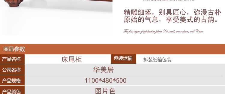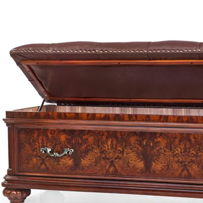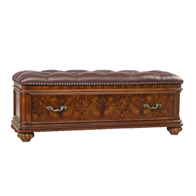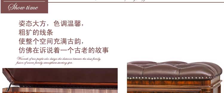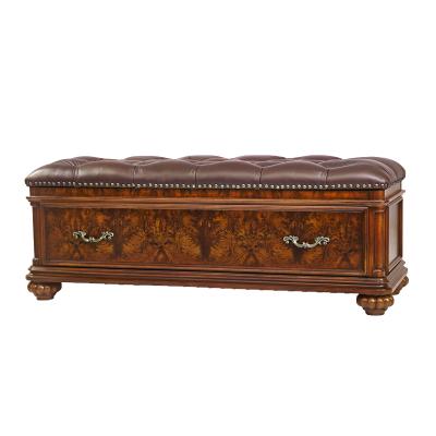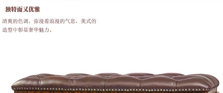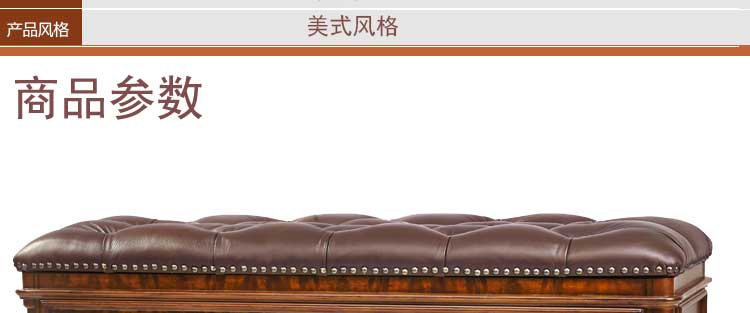 华美居 美式床尾凳 实木换鞋凳欧式床尾凳深色穿鞋凳真皮沙发凳床边凳R105N-46