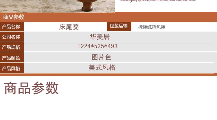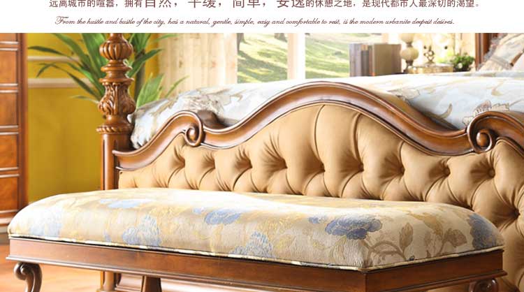 华美居 美式床尾凳 双人床 床尾凳 实木深色高档床尾凳 R118N-41