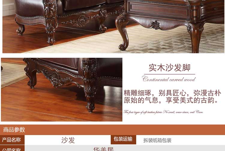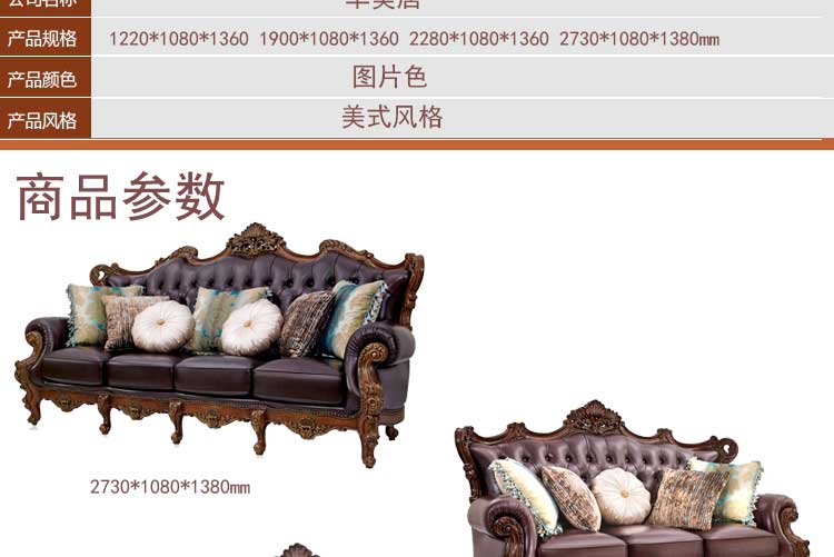 华美居 美式沙发组合客厅U型沙发组合1.2.3.4人位 C-002