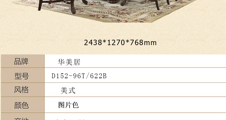 华美居 长餐桌美式炮管桌厂家直销餐桌 D152-96T/622B
