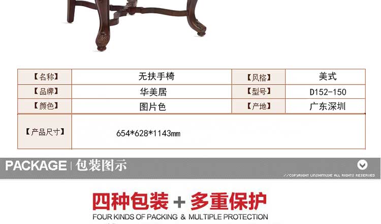 华美居 厂家直销美式餐椅实木餐椅无扶手餐椅 D152-150