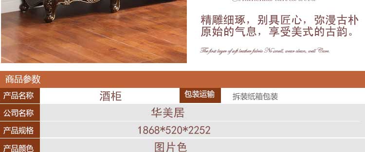 华美居 全实木酒柜酒柜客厅储物柜组装餐厅厨房柜碗柜美式餐边柜D170N-470/2
