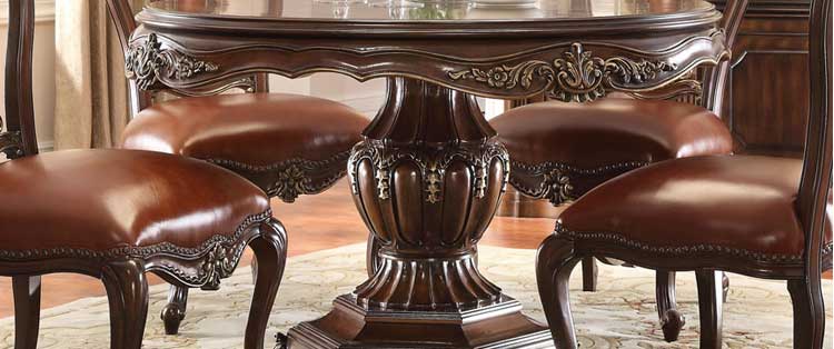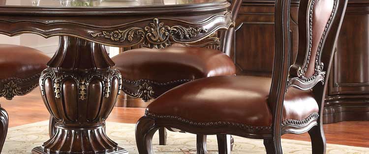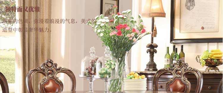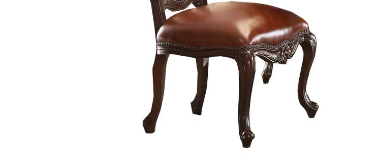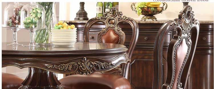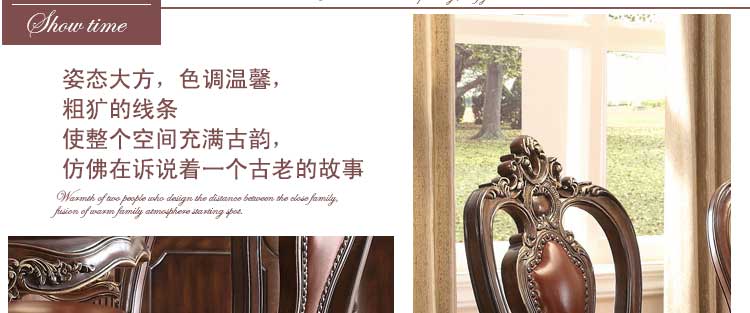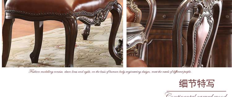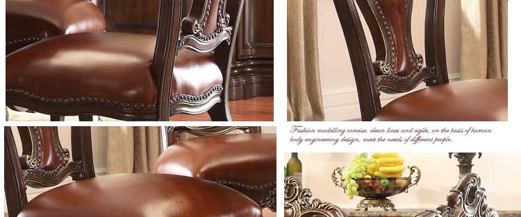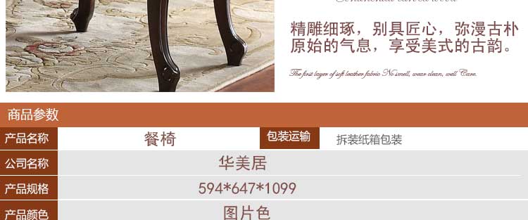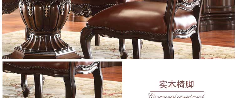 华美居 美式真皮餐椅实木雕花餐椅古典美式咖啡椅酒店椅子 D170N-150N