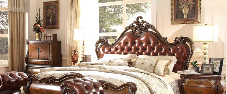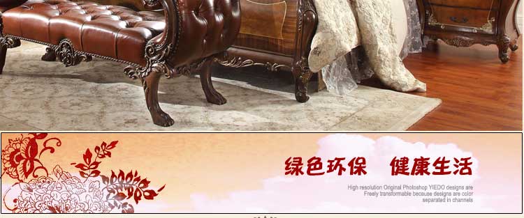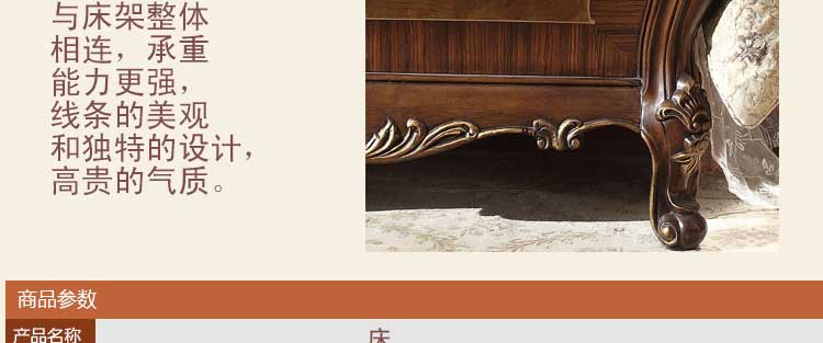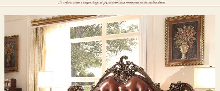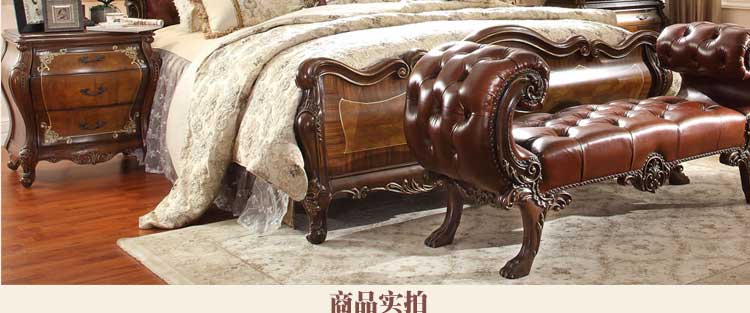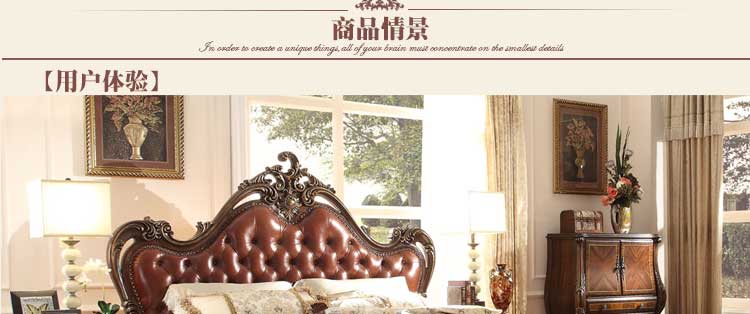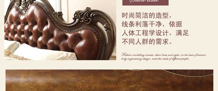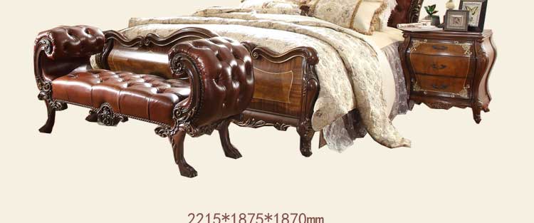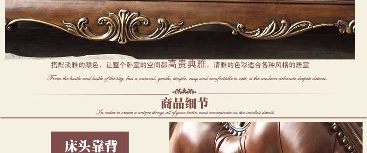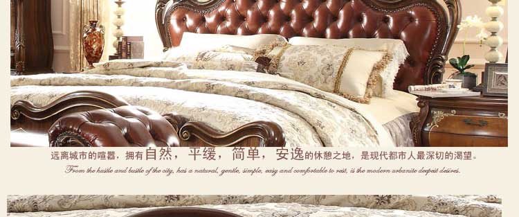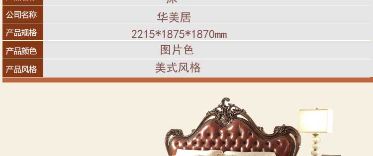 华美居 家具美式床实木床乡村复古美式双人床真皮床1.8米婚床R170N-70