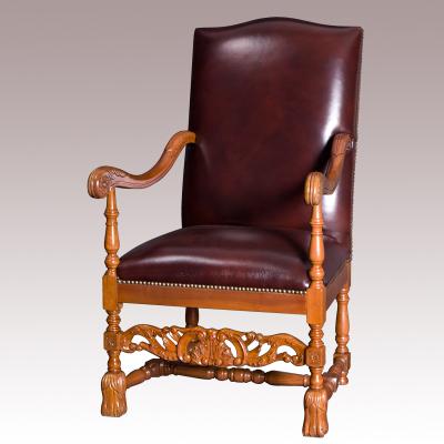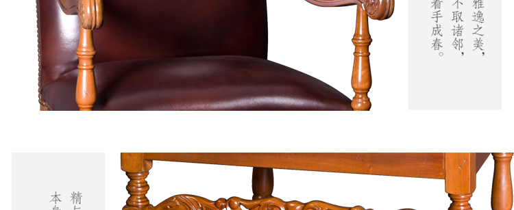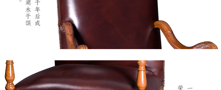 器道实木餐椅 古典中式酒店咖啡厅休闲扶手靠背椅 中式复古做旧皮椅15#