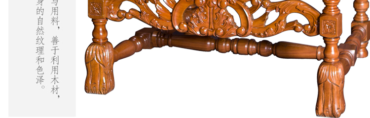 造型简练、以线为主,严格的比例关系是家具造型的基础。结构严谨、作工精细,明代中式风格家具的卯榫结构,极富有科学性。木材坚硬、纹理优美,自然优美,呈现出羽毛兽面等膝陇形象,令人有不尽的遐想。