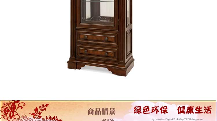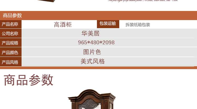 华美居 美式实木酒柜餐边柜门厅酒柜展示柜欧式小酒柜客厅多功能高柜R172-38H