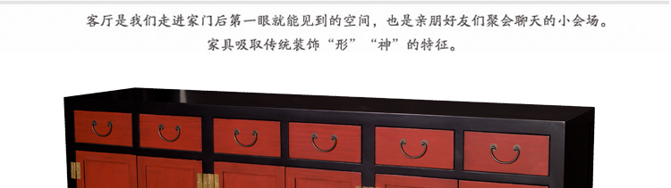 器道中式六斗六门中式仿旧柜家具实木餐边柜中式简约储物柜C-6346